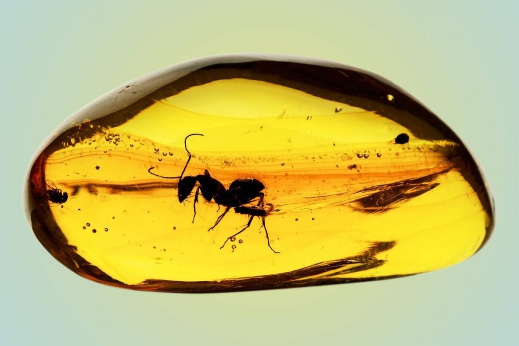 Chaque inclusion est une scène figée. Un instant de vie capturé lorsque la résine, sécrétée par les arbres, s’est durcie et a été ensevelie sous la boue.
